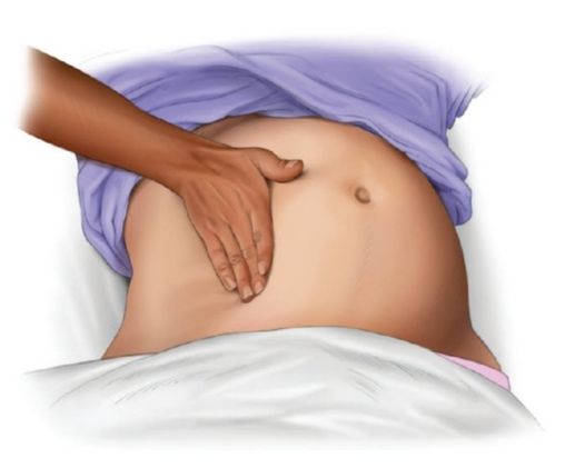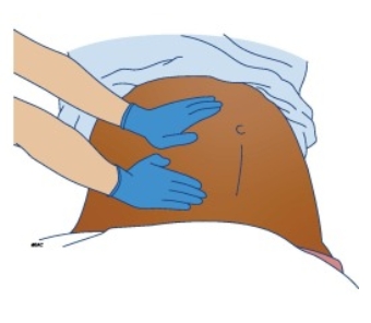 European and UK Resuscitation guidelines suggest performing manual left uterine displacement in maternal cardiac arrest. This can be achieved by placing one or both hands below the uterus, on the patient’s right side, and pushing upwards and to the left. If standing on the patient’s left, reaching across to cup the uterus from below and lifting upward and leftward.